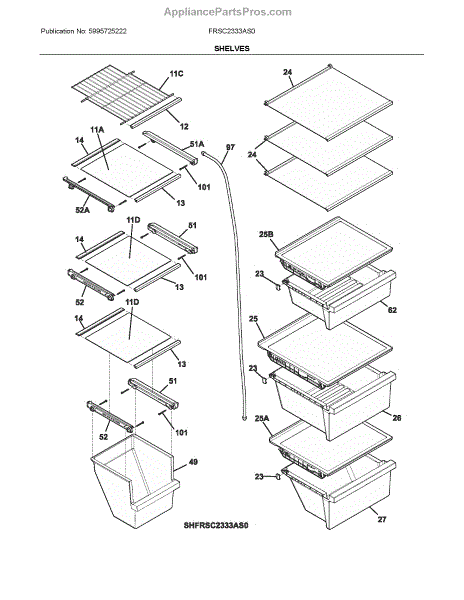 This replacement glass shelf assembly restores a flat, stable surface inside the refrigerator so food and containers sit level and the shelves organize correctly. It fits into existing support rails and provides a durable storage surface. What it does: