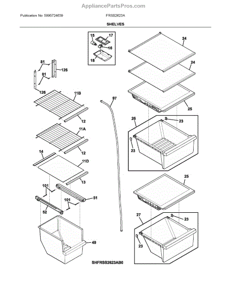 Parts for Frigidaire FRSS2623AB0: Shelves Parts