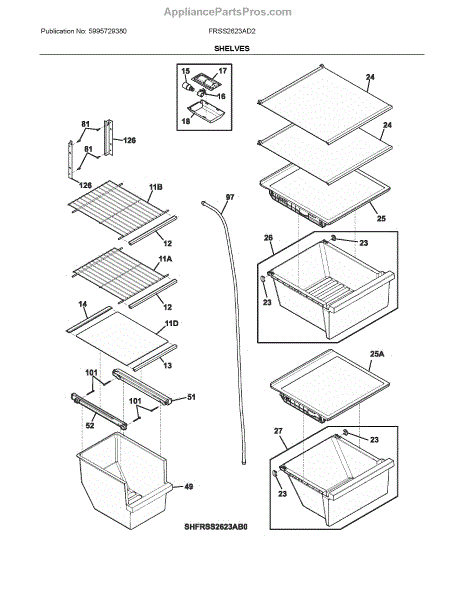 The Shelf Assembly is an OEM part for Frigidaire side-by-side refrigerators. It includes the glass shelf surface.