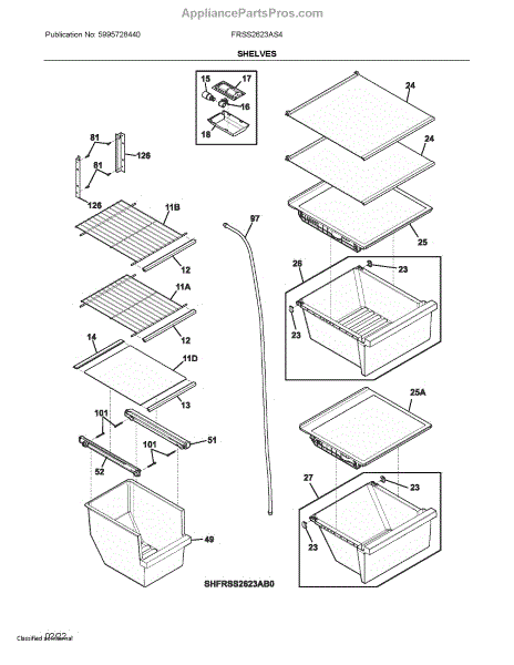 The Shelf Assembly is an OEM part for Frigidaire side-by-side refrigerators. It includes the glass shelf surface.