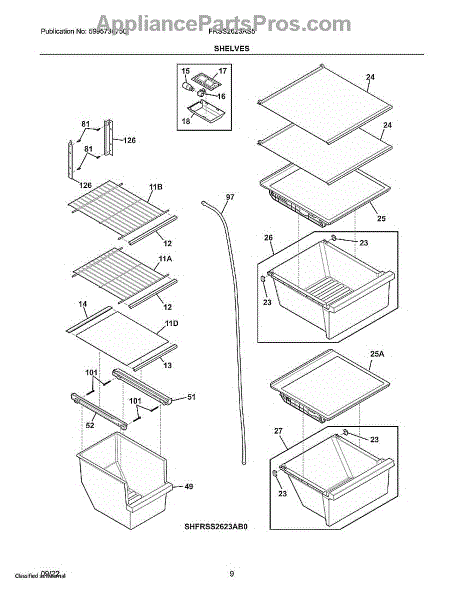 Parts for Frigidaire FRSS2623AS5: Shelves Parts