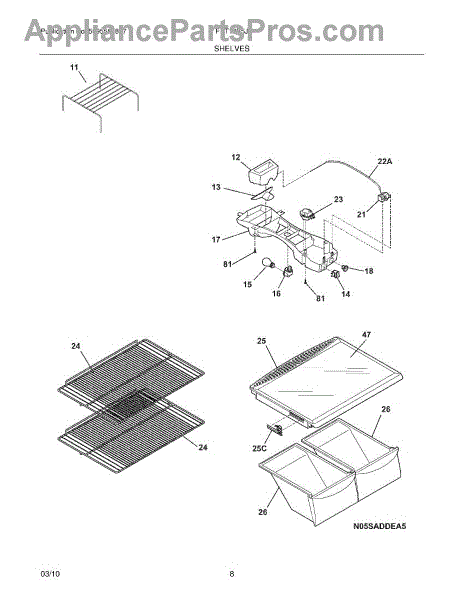 Parts for Frigidaire FRT18B5JZ5: 07 - Shelves Parts