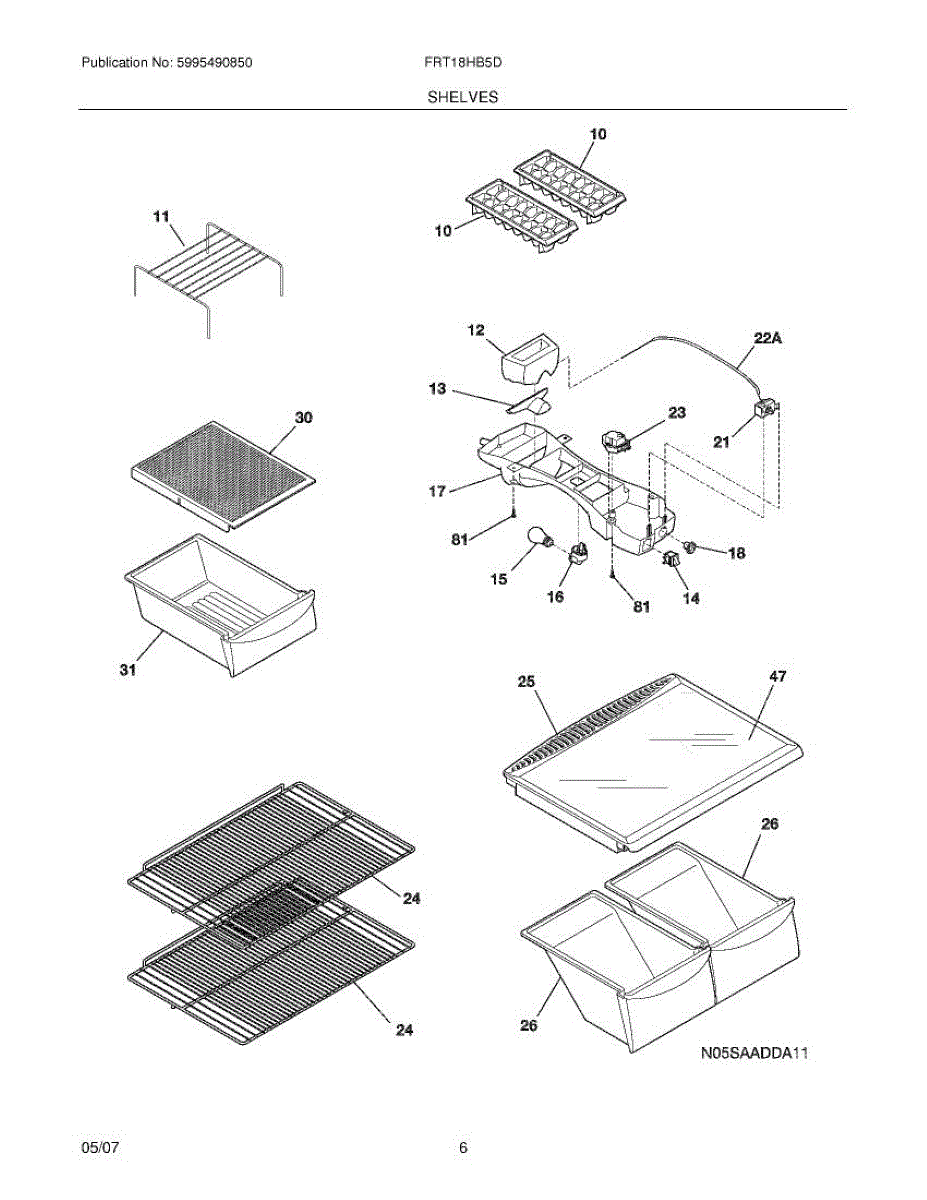 Parts for Frigidaire FRT18HB5DWC: 07 - Shelves Parts