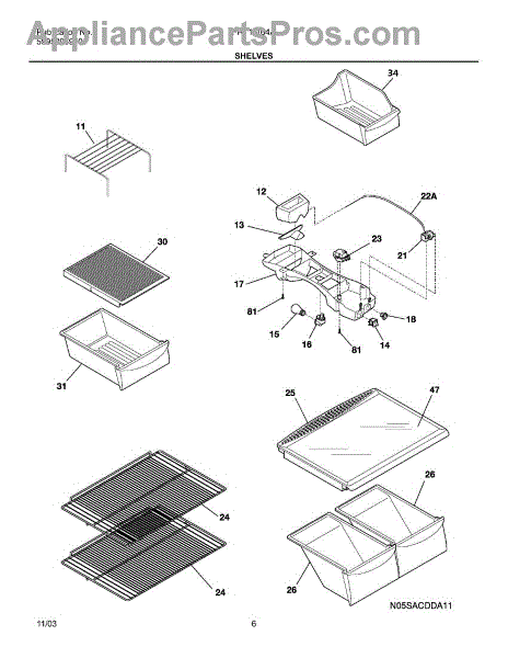The Frigidaire refrigerator wire shelf is an OEM replacement part responsible for providing a stable and organized storage surface within the refrigerator. The wire shelf is typically located inside the refrigerator compartment, and it offers a platform for storing food items, containers, and other refrigerated goods. It is designed with sturdy wires that can support the weight of various items.