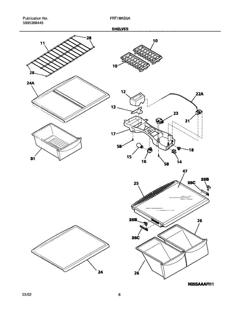 Wire freezer shelf for refrigerator compartments. Replace worn, rusted, bowed, or missing shelves. Installs on built-in ledges for organized storage.