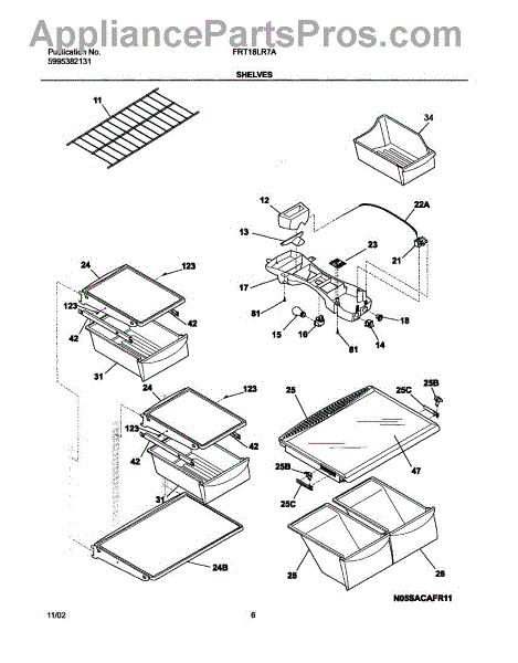 The Shelf "Spill-Safe" is an OEM part for Frigidaire refrigerators. This shelf is designed to hold food items securely while also featuring a spill-safe design that contains spills and prevents liquids from dripping onto lower shelves.