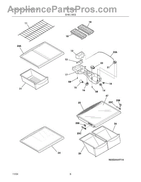The Freezer Shelf is an OEM replacement part for Frigidaire freezers. It is a sturdy and durable wire or glass shelf designed to provide ample storage space within the freezer compartment, allowing you to organize and easily access frozen items. Measuring approximately 24-1/2" W x 12-1/2" D x 5/32" H, the shelf requires no hardware or tools for installation.