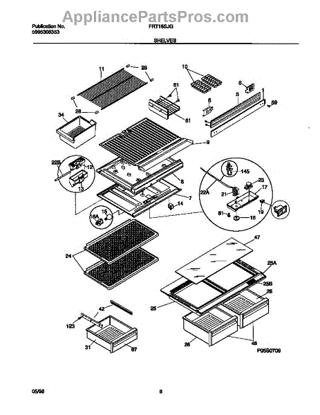 Parts for Frigidaire FRT18SJGW0: 04 - Shelves Parts