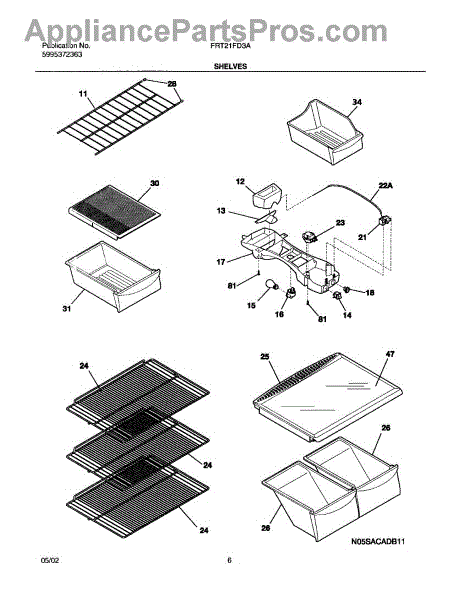 The Crisper Pan Cover is an OEM part for Frigidaire refrigerators. It serves as the shelf that sits above the crisper drawers and supports various items while providing a lid to help maintain the humidity levels necessary to keep fruits and vegetables fresh longer. This cover typically is only the frame and does not include the glass.