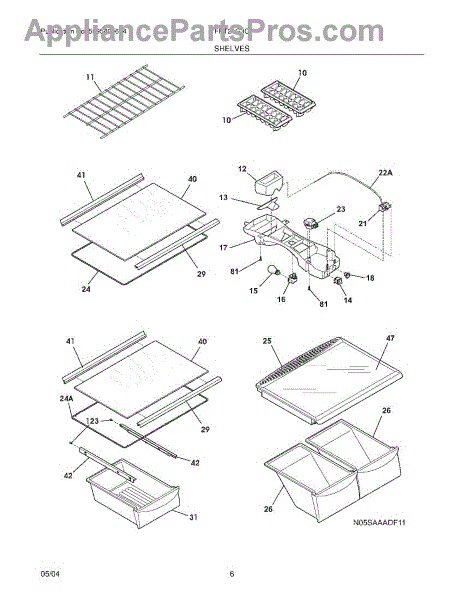The Crisper Pan Cover is an OEM part for Frigidaire refrigerators. It serves as the shelf that sits above the crisper drawers and supports various items while providing a lid to help maintain the humidity levels necessary to keep fruits and vegetables fresh longer. This cover typically is only the frame and does not include the glass.