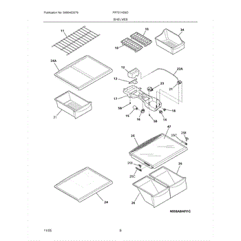The Shelf - "Spill-Safe" is an OEM part for Frigidaire refrigerators. This shelf is designed to contain spills and prevent liquids from leaking onto other shelves or the bottom of the refrigerator, helping to maintain cleanliness and order within the appliance.