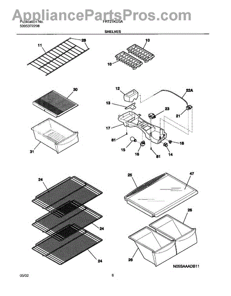 The Crisper Pan Cover is an OEM part for Frigidaire refrigerators. It serves as the shelf that sits above the crisper drawers and supports various items while providing a lid to help maintain the humidity levels necessary to keep fruits and vegetables fresh longer. This cover typically is only the frame and does not include the glass.