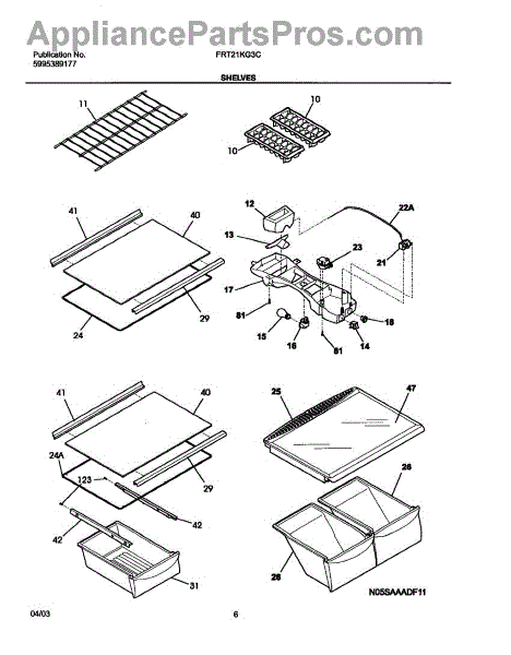 This shelf spacer is a genuine OEM replacement part sourced directly from the manufacturer, and it is used in refrigerators and freezers. This shelf spacer attaches to wire shelves in the refrigerator and freezer to hold them in place. If the shelf spacer is lost or damaged, the shelf will not stay in place. The spacer should be replaced.Refrigerator shelves must be sturdy to hold the weight of the food stored inside. If the shelf spacer is missing, the stability of the shelf is compromised. This part snaps onto the wire shelf and prevents it from moving around. This keeps the food inside the refrigerator from causing the shelf to fall. No tools are needed to install this part. If the shelf spacer is missing, do not store food on the shelf until it is installed.This shelf spacer is a white plastic part that is sold individually. It is designed for use in refrigerators manufactured by Kenmore, Frigidaire, Westinghouse, and Gibson.