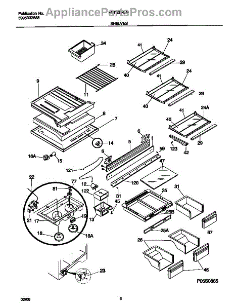 Replacement screw for securing shelf rails, meat pan brackets, and interior panels in refrigerators. Use when original screws are missing, stripped, or lost.