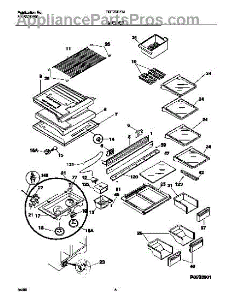 Replacement screw for securing shelf rails, meat pan brackets, and interior panels in refrigerators. Use when original screws are missing, stripped, or lost.