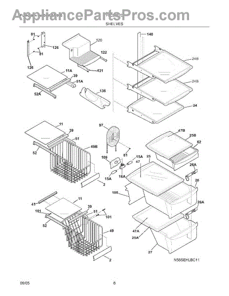 Parts for Frigidaire FSC23F7DB7: 09 - Shelves Parts