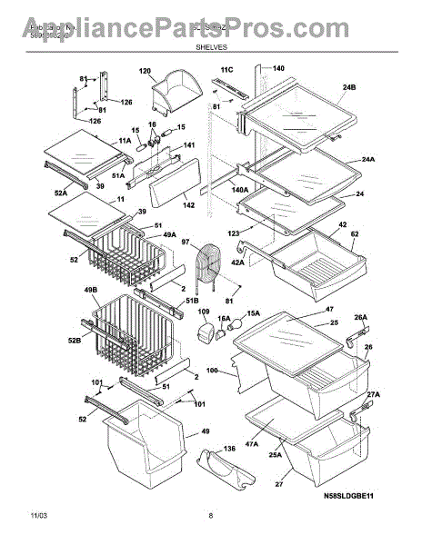Over time, the glass shelf can become damaged due to heavy items being placed on it, accidental impacts, or thermal stress from temperature changes. Replacing a damaged shelf ensures safe and effective storage inside the refrigerator.