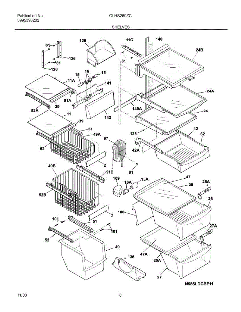 Over time, the glass shelf can become damaged due to heavy items being placed on it, accidental impacts, or thermal stress from temperature changes. Replacing a damaged shelf ensures safe and effective storage inside the refrigerator.