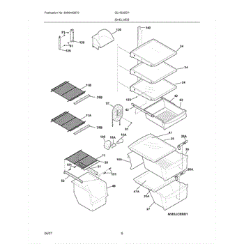 This shelf and trim assembly replaces a damaged or worn refrigerator shelf trim to restore a secure shelf edge and improve storage stability. It provides the finished trim piece that retains items and keeps the shelf seated correctly. What it does: