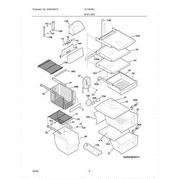 This shelf and trim assembly replaces a damaged or worn refrigerator shelf trim to restore a secure shelf edge and improve storage stability. It provides the finished trim piece that retains items and keeps the shelf seated correctly. What it does: