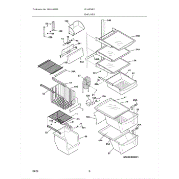 This shelf and trim assembly replaces a damaged or worn refrigerator shelf trim to restore a secure shelf edge and improve storage stability. It provides the finished trim piece that retains items and keeps the shelf seated correctly. What it does:
