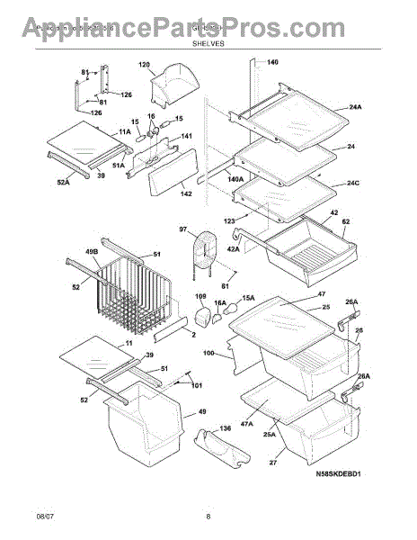 The Freezer Basket Hanger is an OEM part for Frigidaire refrigerators. This component supports the freezer basket, ensuring it stays securely in place and slides in and out smoothly. The hanger is crucial for organizing and maximizing the storage space in the freezer compartment.