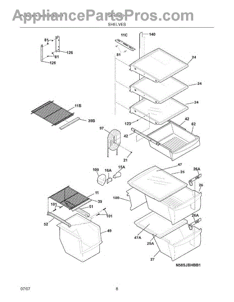 Parts for Frigidaire GLHS65EHB4: 09 - Shelves Parts