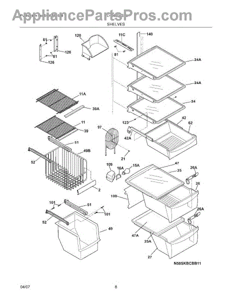 Parts for Frigidaire GLHS66EFSB5: 09 - Shelves Parts