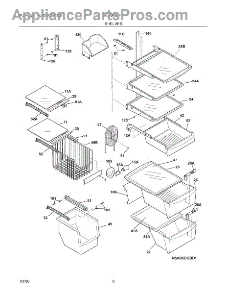 Over time, the glass shelf can become damaged due to heavy items being placed on it, accidental impacts, or thermal stress from temperature changes. Replacing a damaged shelf ensures safe and effective storage inside the refrigerator.