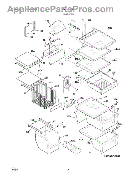 Parts for Frigidaire GLHS69EHQ1: 09 - Shelves Parts
