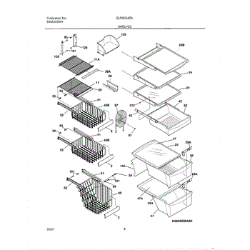 This shelf and trim assembly replaces a damaged or worn refrigerator shelf trim to restore a secure shelf edge and improve storage stability. It provides the finished trim piece that retains items and keeps the shelf seated correctly. What it does: