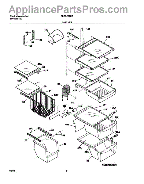 Parts for Frigidaire GLRS267ZCQ0: 09 - Shelves Parts