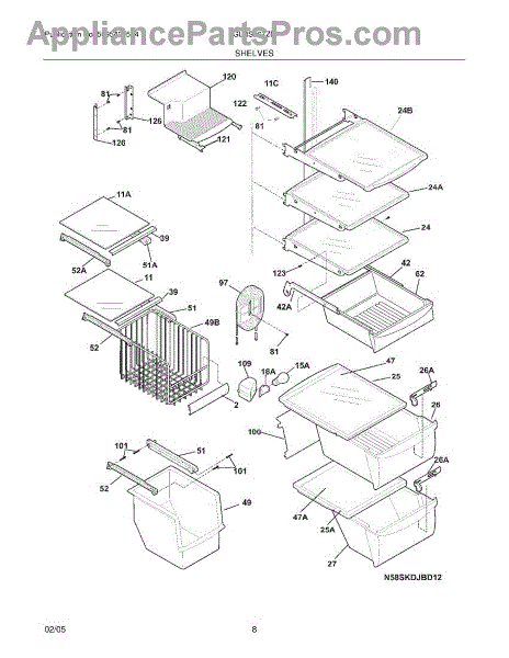 Over time, the glass shelf can become damaged due to heavy items being placed on it, accidental impacts, or thermal stress from temperature changes. Replacing a damaged shelf ensures safe and effective storage inside the refrigerator.