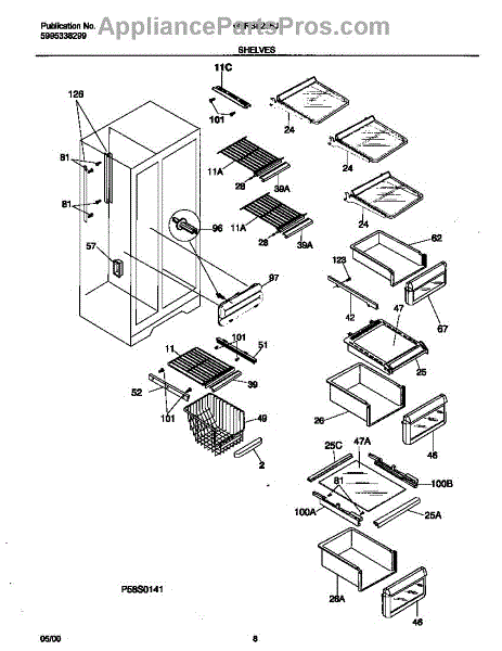 The Upper Crisper Pan is an OEM replacement part for Frigidaire refrigerators. Located on the slidable tracks inside fresh food section that holds the vegetables/produce. The pan measures about 16-1/2 inches wide by 8 inches high by 16 inches deep. The drawer front is not included for lower pan order 5303289501. Causes of a bad upper crisper pan may be cracks in plastic developing over extended use, stains that render it unsuitable for food contact, or warping from exposure to wet environments inside the crisper. Symptoms of a bad upper crisper pan include: