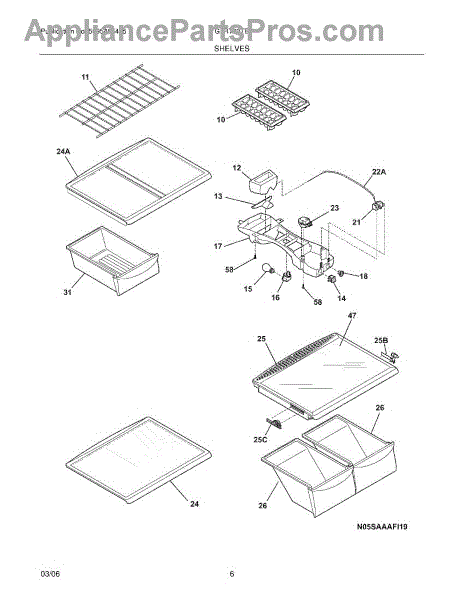 Wire freezer shelf for refrigerator compartments. Replace worn, rusted, bowed, or missing shelves. Installs on built-in ledges for organized storage.