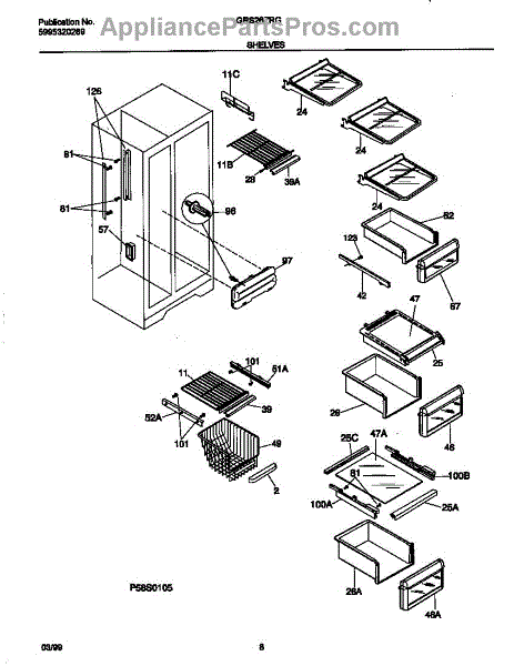 Parts for Frigidaire GRS26ZRGD5: 05 - Shelves Parts