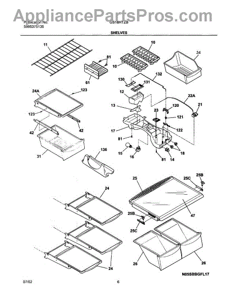 The Shelf "Spill-Safe" is an OEM part for Frigidaire refrigerators. This shelf is designed to hold food items securely while also featuring a spill-safe design that contains spills and prevents liquids from dripping onto lower shelves.