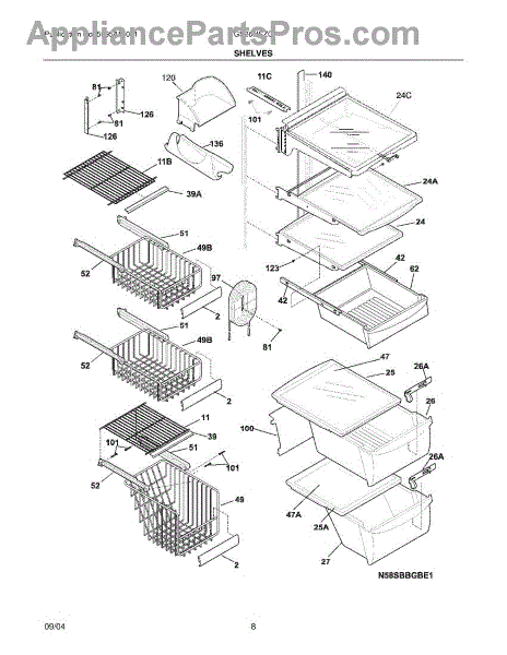 The Refrigerator Shelf is an OEM replacement part for Frigidaire side-by-side refrigerators. It is a durable glass surface that provides adjustable storage for various food items within the refrigerator compartment.