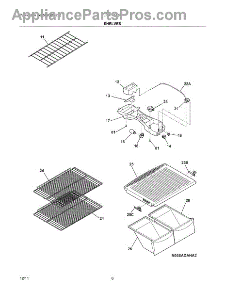 The Refrigerator Shelf is an OEM part for Frigidaire refrigerators. This shelf provides sturdy storage space within the refrigerator, helping to organize food items and maximize the use of available space. The shelf measures approximately 24 inches in width and 16.25 inches in length.