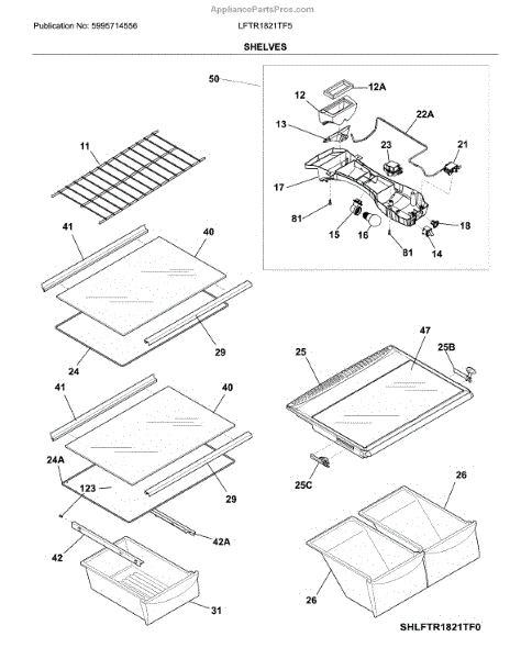 Parts for Frigidaire LFTR1821TF5: Shelves Parts