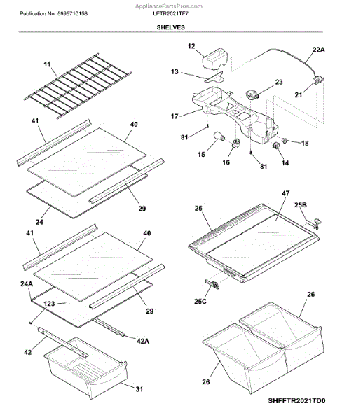 Parts for Frigidaire LFTR2021TF7: Shelves Parts