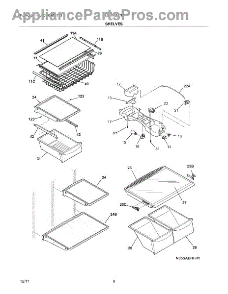 The Crisper Pan Cover is an OEM part for Frigidaire refrigerators. It serves as the shelf that sits above the crisper drawers and supports various items while providing a lid to help maintain the humidity levels necessary to keep fruits and vegetables fresh longer. This cover typically is only the frame and does not include the glass.