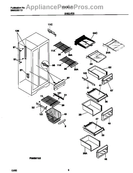 The Upper Crisper Pan is an OEM replacement part for Frigidaire refrigerators. Located on the slidable tracks inside fresh food section that holds the vegetables/produce. The pan measures about 16-1/2 inches wide by 8 inches high by 16 inches deep. The drawer front is not included for lower pan order 5303289501. Causes of a bad upper crisper pan may be cracks in plastic developing over extended use, stains that render it unsuitable for food contact, or warping from exposure to wet environments inside the crisper. Symptoms of a bad upper crisper pan include:
