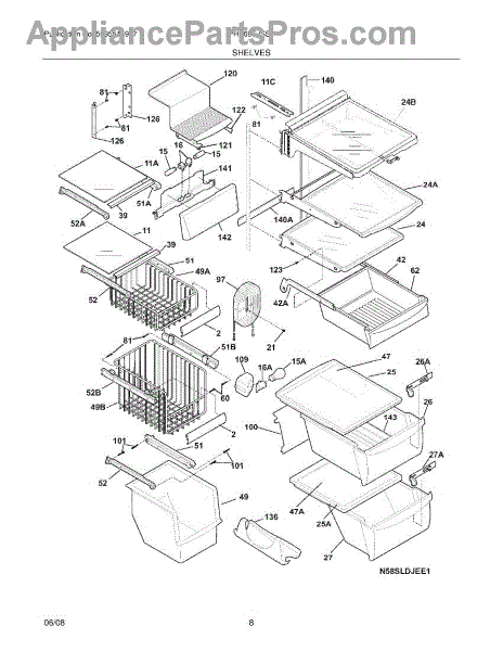 Over time, the glass shelf can become damaged due to heavy items being placed on it, accidental impacts, or thermal stress from temperature changes. Replacing a damaged shelf ensures safe and effective storage inside the refrigerator.