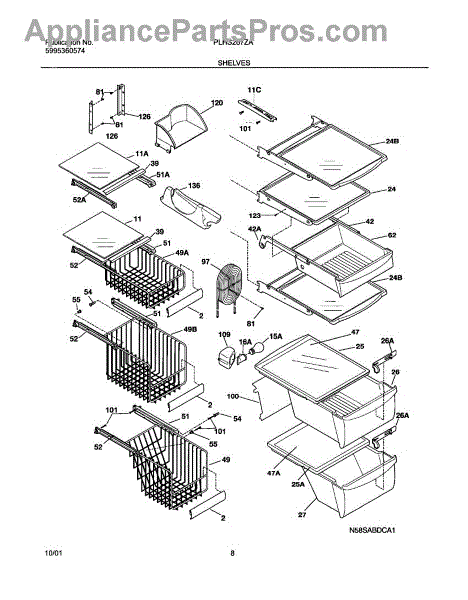 Over time, the glass shelf can become damaged due to heavy items being placed on it, accidental impacts, or thermal stress from temperature changes. Replacing a damaged shelf ensures safe and effective storage inside the refrigerator.
