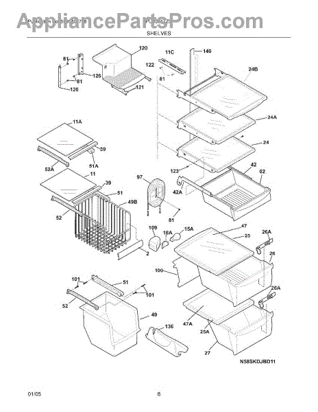 Over time, the glass shelf can become damaged due to heavy items being placed on it, accidental impacts, or thermal stress from temperature changes. Replacing a damaged shelf ensures safe and effective storage inside the refrigerator.
