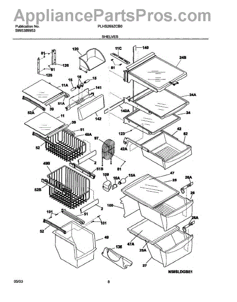 Over time, the glass shelf can become damaged due to heavy items being placed on it, accidental impacts, or thermal stress from temperature changes. Replacing a damaged shelf ensures safe and effective storage inside the refrigerator.