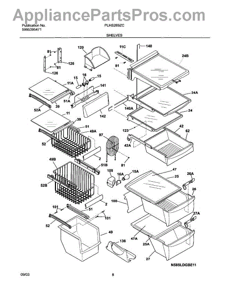 Over time, the glass shelf can become damaged due to heavy items being placed on it, accidental impacts, or thermal stress from temperature changes. Replacing a damaged shelf ensures safe and effective storage inside the refrigerator.