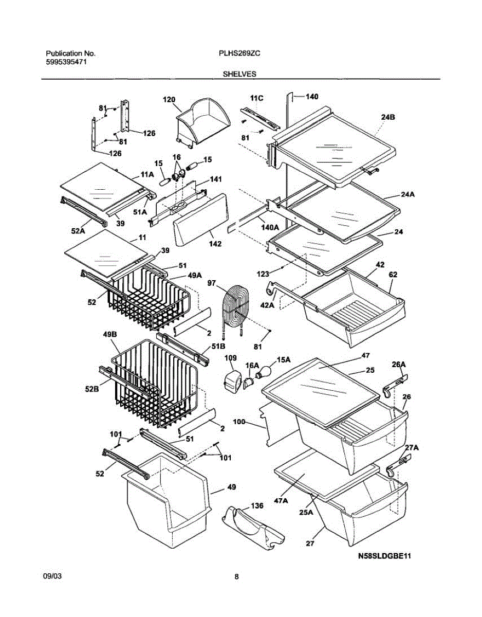Over time, the glass shelf can become damaged due to heavy items being placed on it, accidental impacts, or thermal stress from temperature changes. Replacing a damaged shelf ensures safe and effective storage inside the refrigerator.