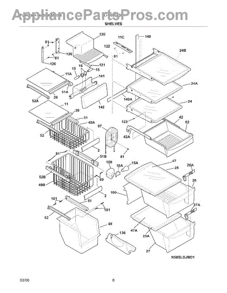 Over time, the glass shelf can become damaged due to heavy items being placed on it, accidental impacts, or thermal stress from temperature changes. Replacing a damaged shelf ensures safe and effective storage inside the refrigerator.